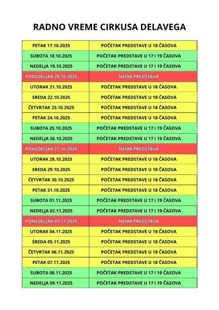 Šator cirkusa Delavega se greje, rezervišite vaše ulaznice na telefon 061/11-99-567 i uživajte u predstavi za sve generacije: decu, omladinu i odrasle.